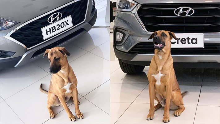 '어슬렁, 어슬렁', 브라질 현대차 대리점 주차장에 유기견 한 마리가 나타났습니다. 그 강아지를 본 현대차 현지 직원들은 비에 젖은 유기견을 쇼룸 안으로 들이고, 음식과 편히 쉴 곳을 마련해 줬습니다.